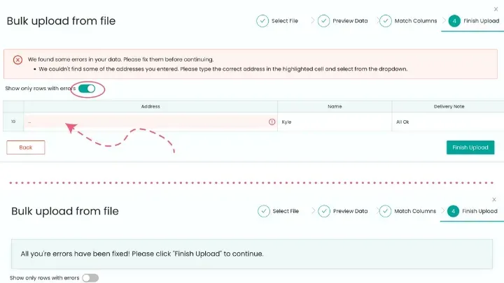 [Check out our guides: How to format and upload spreadsheets and .csv files and Address formatting and common issues].