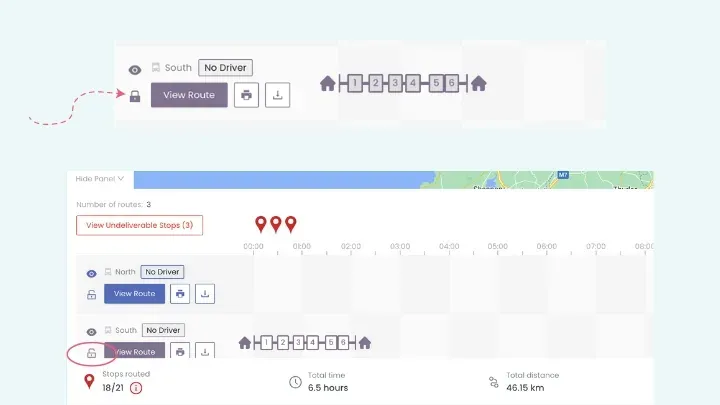 Locking a route is as simple as clicking on the lock icon associated with the route you wish to protect. Once locked, that particular route becomes immune to any modifications or optimizations you perform on other routes within your fleet. This means that you can freely make adjustments, re-optimize routes, or implement changes to improve overall efficiency, all without affecting the locked routes.