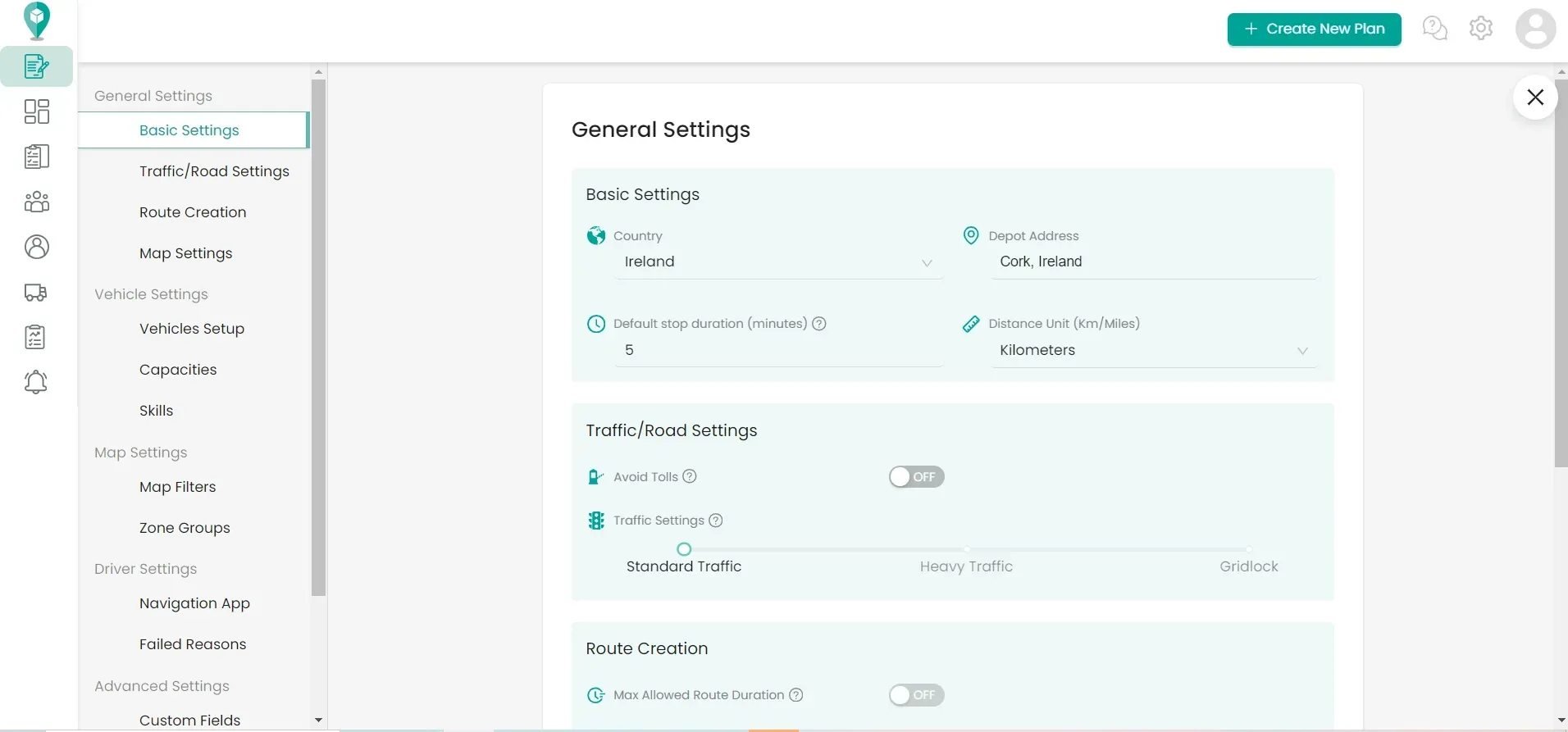 We have introduced a dedicated section for Vehicle Capacities in our settings menu. Here you can effortlessly set the maximum number of stops per route for each of your vehicles. By defining these limits, you can ensure that your vehicles are assigned an appropriate number of stops that align with their capacities and operational constraints. This helps prevent overloading or underutilization of resources, leading to more balanced and optimized routes.