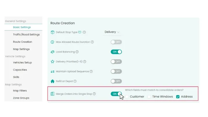 - Scroll down until you locate the option to 'Merge Orders into Single Stop'.