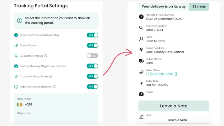 Our latest update allows you to personalize the information shared with your customers via live tracking links. Customize your settings to enhance your customers' experience:
