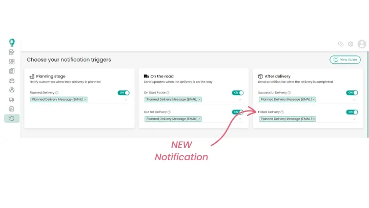 Send a notification once a delivery has been successfully made. Additionally, you can now send a "failed delivery" notification, allowing customers to re-book their delivery at a new time.