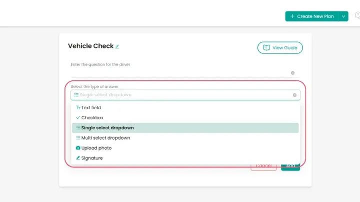 If your drivers need to conduct a daily vehicle inspection before starting their route, set up a vehicle check questionnaire with questions like: