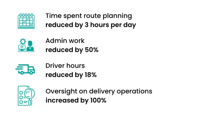 By maximizing vehicle capacities, driver hours are significantly reduced resulting in greater work-life balance and happier safer drivers. Driver hours being reduced also decreased the companies CO2 emissions helping the company to achieve its greening targets.