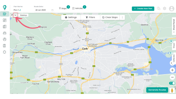 Now click ‘Route Planning’ on the left hand menu and open a draft plan to open the map view. Now you can start creating your zones.