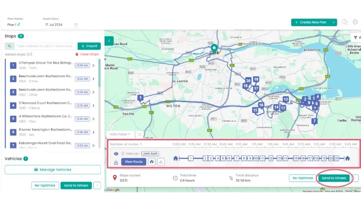 Once you have made your changes, click ‘Re-optimize’ to generate the updated route.