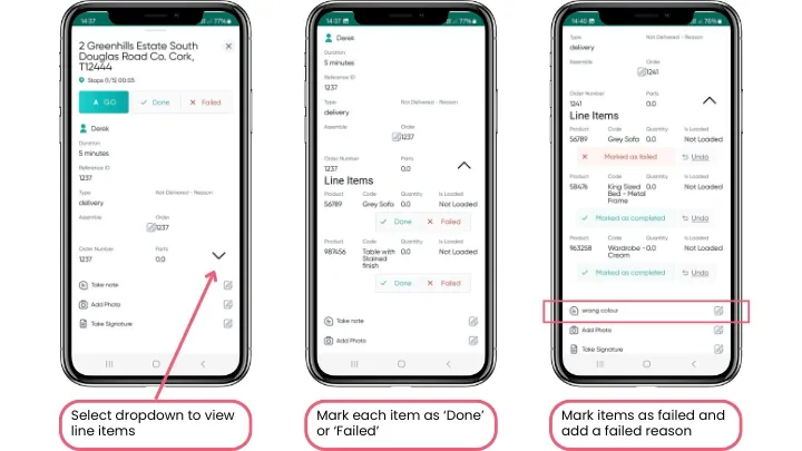 - The driver marks the successfully delivered items as complete.