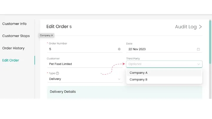 - Edit the order information and select the relevant company from the dropdown menu to associate the order with that specific company.