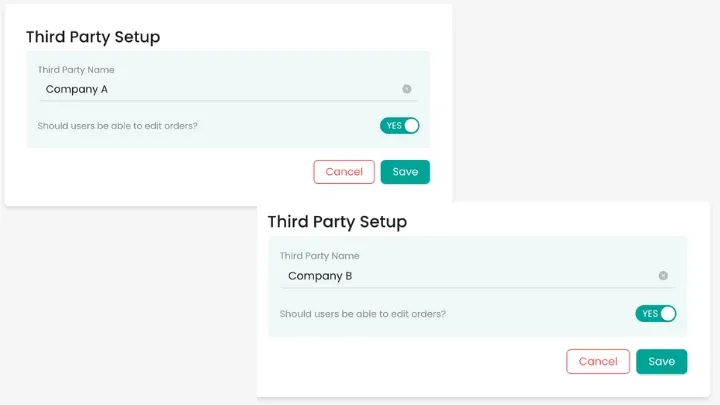- At this stage you will also be able to set whether the users for this company will have access to make updates to orders.